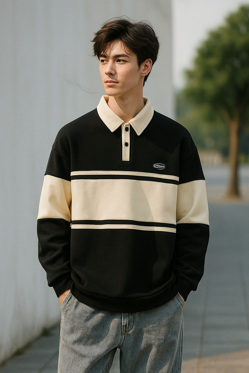 Cream & White Contrast Sweatshirt – Casual Winter Fleece -